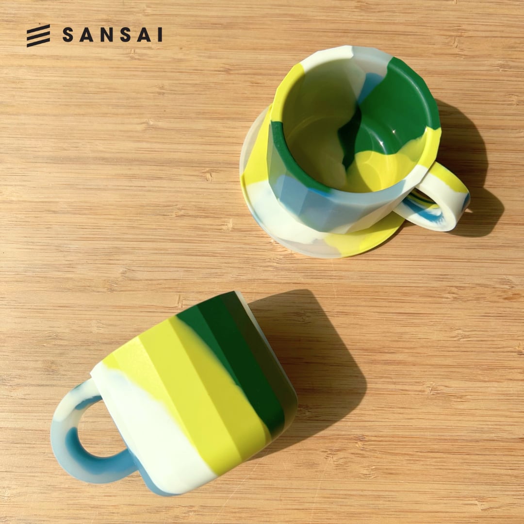 カラフルなマーブル模様が特徴の、シリコン製カップです。